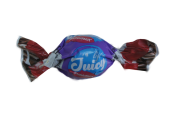 Конфета Джуси лайт  состоит из двух слоев. Сочетание двух текстур начинок, сочного желе со вкусом тропического маракуйя и сливочной начинки. Покрыта эта сладость темной глазурью.